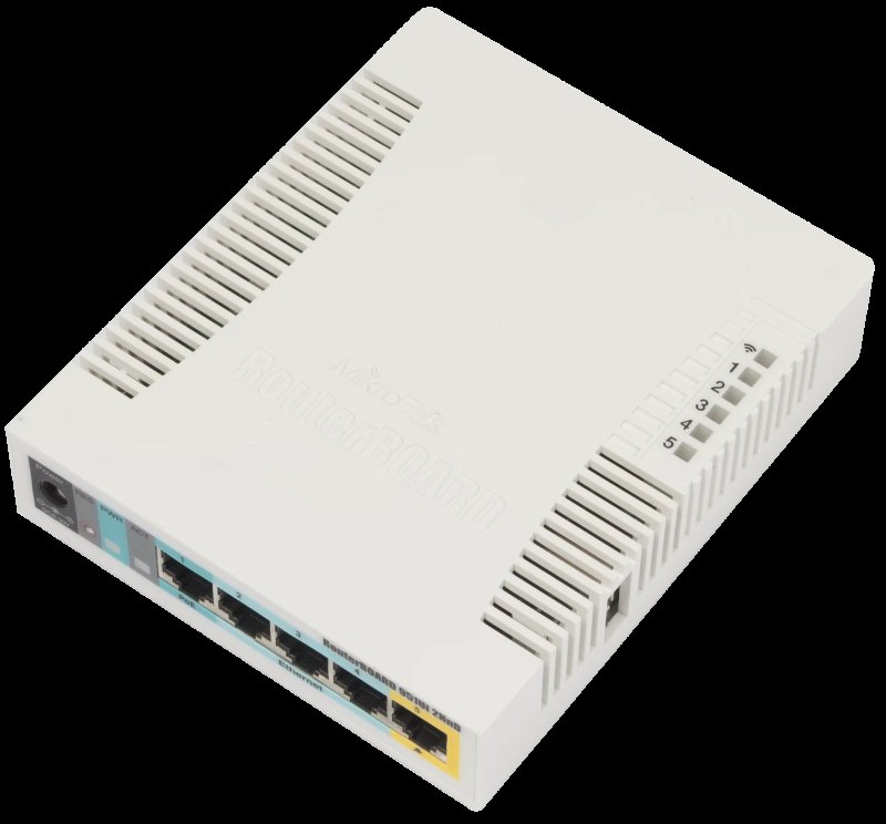 The RB951Ui-2HnD is a wireless SOHO AP with a new generation Atheros CPU and more processing power. It has five Ethernet ports, one USB 2.0 port and a high power 2.4GHz 802.11b/g/n wireless AP with antennas built in.