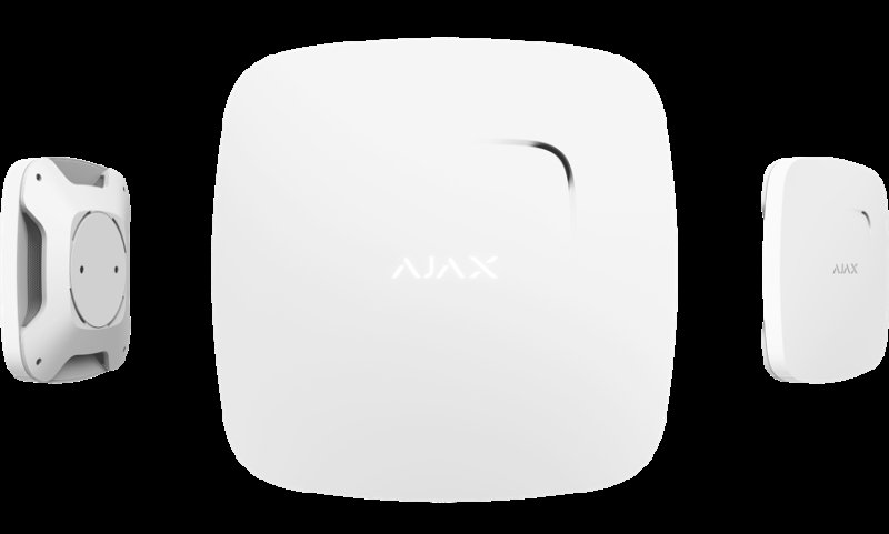 Wireless fire detector with temperature sensor that monitors security in the room twenty four hours a day and immediately notifies of smoke and sharp jumps in temperature.