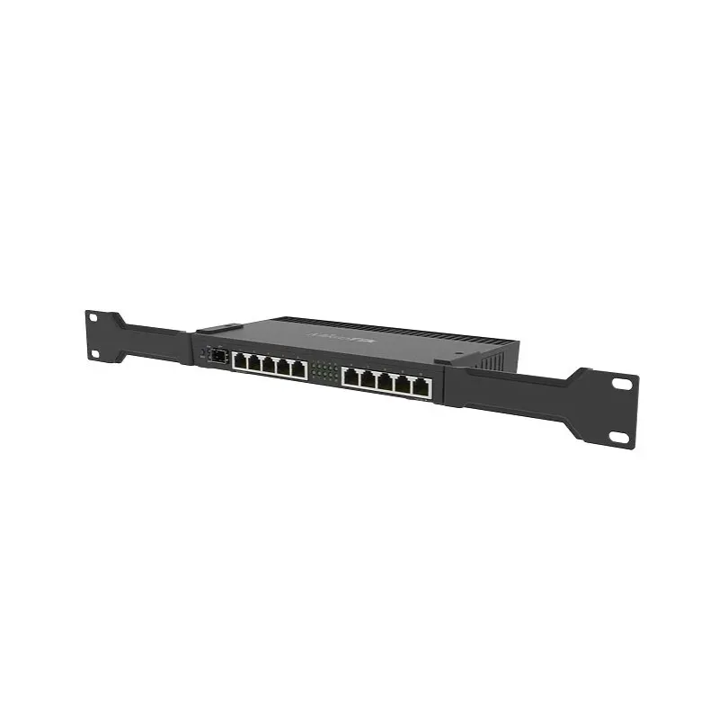 Powerful 10xGigabit port router with a Quad-core 1.4Ghz CPU, 1GB RAM, SFP+ 10Gbps cage and desktop case with rack ears.